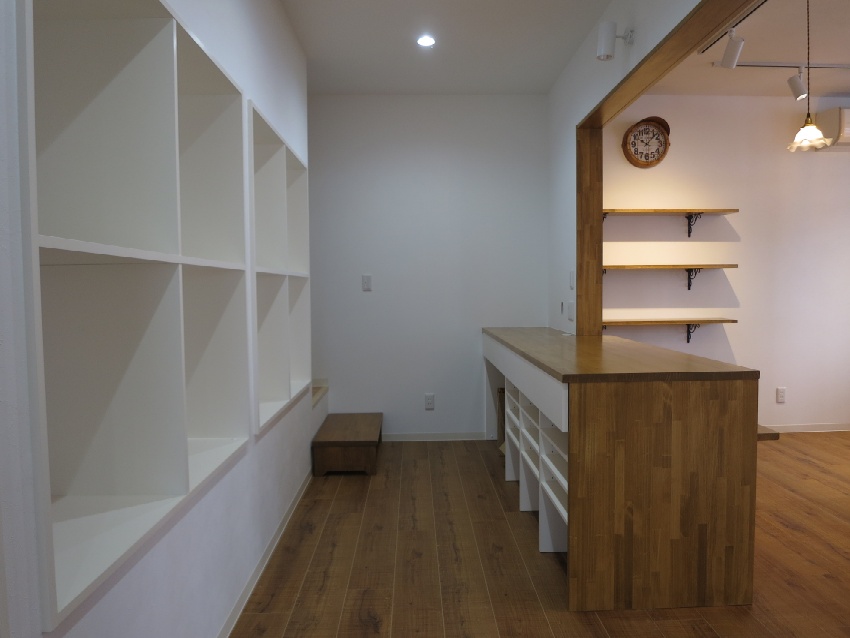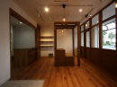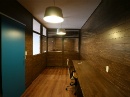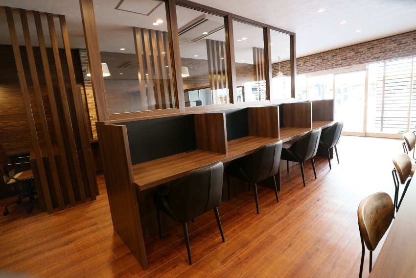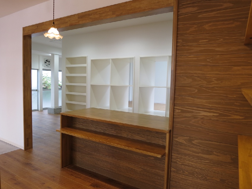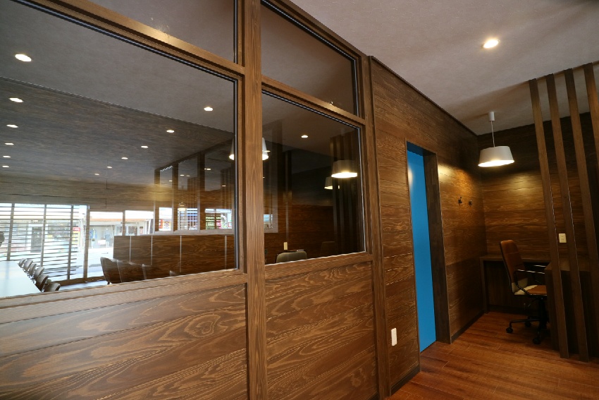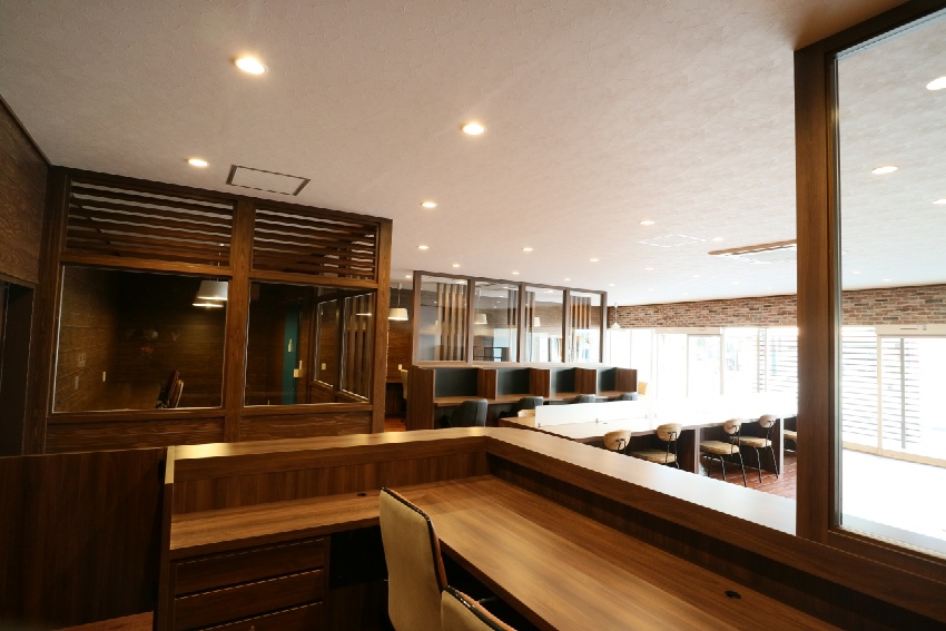商店街の空き店舗を、大人の雰囲気漂う、コワーキングスペースとしてリノベーションしました。ダークトーンの木目で統一した落ち着いたインテリア。分割できる大きな会議テーブルや、工夫が詰まった書架や機能デスク等の家具もあわせて設計しました。TENOSSE HP:http://tenosse.com/